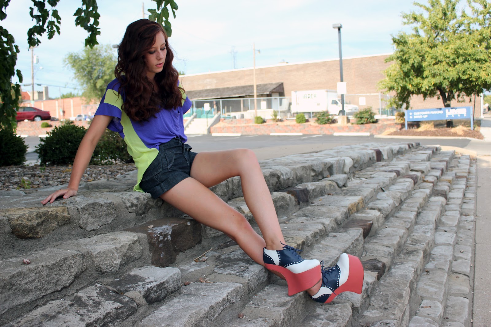 ABOUT THE LOOK: Don't laugh, the romper is my Grandmother's from way back when. It is really big on me so check and see if you can tell where I tied it:P Anyway, back to the look. Every time I come to do a shoot at this playground, I feel like it's suppose to be fun and like I need to let out my inner child! More like I want to than need to. So, to do that, I mixed fun colors, with bright accessories and, but of course, SUGAR! Such simple props such as a lollipop and sour octopus really complete an outfit and a shoot.