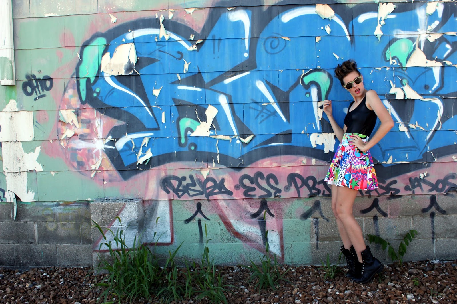 It's one of those side-step, tuck and roll, jump over the brick wall and whack the turtle ninja on the head with an incredibly light super hammer type of days. What does all that mean? Heck if she knows, but it perfectly explains how she feels at the moment. Being in college, being a young adult, you have to try different looks because you still don't know who you truly are until you put your hair in a faux hawk, your body in a leather mesh body suit and your booty in a skirt filled with comic strip phrases.